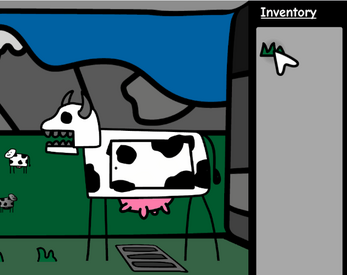 Unfortunately, I have fallen into the point with escape games where I have no idea where to go next and my own hubris doesn't want me to look at a walkthrough. To get an idea of how far I've gotten, I have the grass, pile of hay, magnet, batteries, and bucket of milk. The two hay blocks are in front of the window and I have seen what's on the other side.